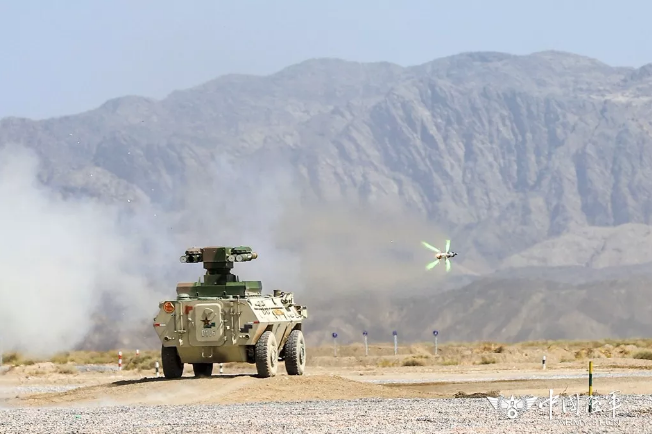 6輛紅箭-9反坦克導(dǎo)彈發(fā)射車快速占領(lǐng)陣地