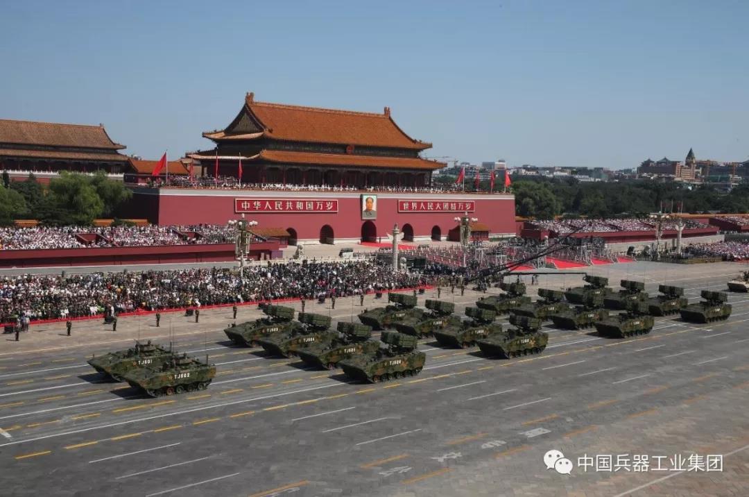 2015年9月3日,紀念抗戰(zhàn)勝利70周年閱兵在天安門廣場舉行,接受檢閱的27個裝備方隊中,兵器工業(yè)集團研制生產(chǎn)的裝備占到13型,99A主戰(zhàn)坦克、紅箭10導彈發(fā)射車、11式輪式裝甲突擊車和35毫米自行高炮系統(tǒng)等裝備首次亮相。
