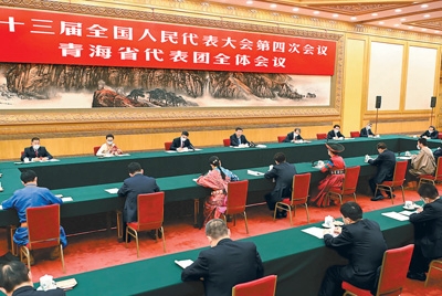 3月7日,中共中央總書記、國家主席、中央軍委主席習(xí)近平參加十三屆全國人大四次會議青海代表團的審議。新華社記者 李濤攝