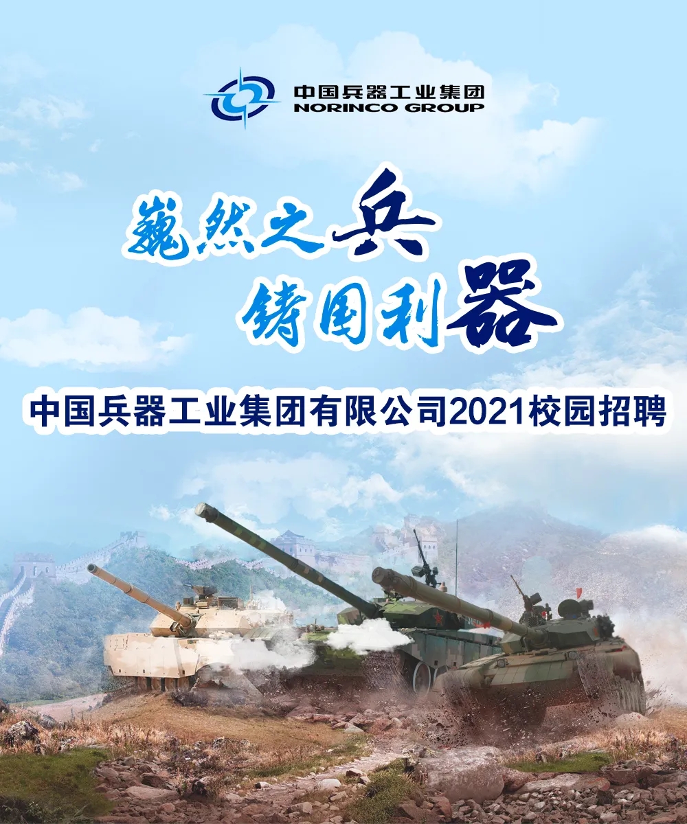 時間的軌道 承載著奮斗的汗水和腳印 十數(shù)年寒窗,半余生苦讀 即將告別象牙塔的你 是否已經(jīng)準備好 在新的人生道路上揚帆起航 我們懂你的赤子之心 我們將伴你共同成長 感受中國兵器的魅力 來兵器工業(yè),攜夢想同行 中國兵器工業(yè)集團 2021春季校園招聘 正式啟動! 關(guān)于我們 中國兵器工業(yè)集團有限公司 ◆是我軍機械化、信息化、智能化裝備發(fā)展的骨干 ◆是全軍毀傷打擊的核心支撐 ◆是現(xiàn)代化新型陸軍體系作戰(zhàn)能力科研制造的主體 ◆是國家“一帶一路”建設和軍民融合發(fā)展的主力 中國兵器工業(yè)集團現(xiàn)有50余家子集團和直管單位,分布在北京、陜西、內(nèi)蒙古等29個省、市、自治區(qū),在全球70余個國家和地區(qū)設立了100余家境外分子公司和代表處。集團公司連續(xù)16個年度和5個任期蟬聯(lián)國務院國資委業(yè)績考核A級,位列世界500強企業(yè)排名第154位。 揮別校園 人生的挑戰(zhàn)才剛剛開始 為你的未來 選擇一個廣闊的舞臺 加入兵器工業(yè),追尋人生理想 揮灑青春激情,共鑄強大國防 履行強軍首責,推動高質(zhì)量發(fā)展 中國兵器工業(yè)集團 期待志同道合的你 |