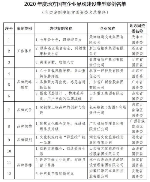 2020年度100個(gè)國(guó)有企業(yè)品牌建設(shè)典型案例和100個(gè)優(yōu)秀品牌故事,匯集企業(yè)優(yōu)秀經(jīng)驗(yàn)做法,豐富國(guó)企品牌資源池,促進(jìn)企業(yè)相互學(xué)習(xí)借鑒,加快提高品牌管理專業(yè)化水平。