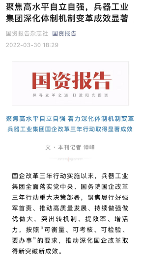兵器工業(yè)集團國企改革三年行動工作成效引發(fā)廣泛關(guān)注丨國企改革看兵器 |