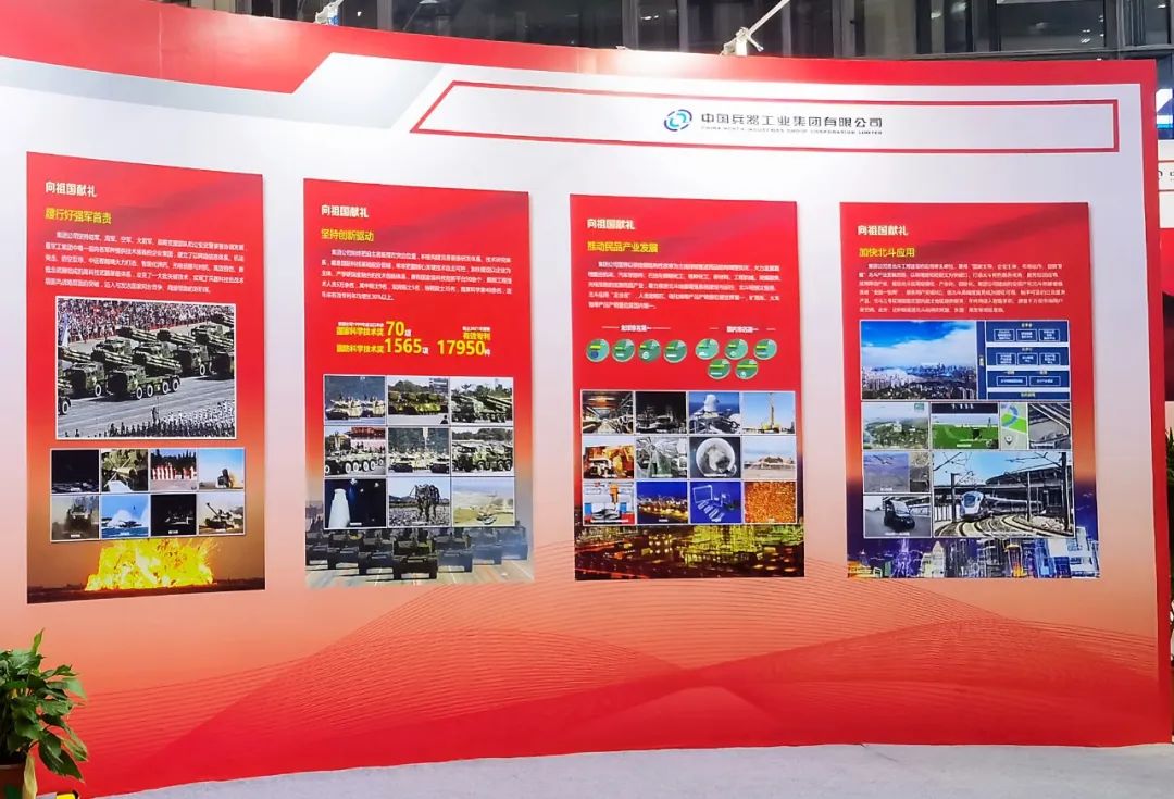 中國兵器工業(yè)集團(tuán)有限公司所在展位按照“1+6”的主題格局進(jìn)行布展,組織北方公司、兵器一院、北斗院、光電集團(tuán)、信息院集團(tuán)、一機(jī)集團(tuán)、北重集團(tuán)、北方車輛集團(tuán)、武重集團(tuán)、北奔重汽、豫西集團(tuán)、淮海集團(tuán)和西北工業(yè)集團(tuán)13家單位參加國防郵電產(chǎn)業(yè)專題展區(qū)(1號館)展示。其中,“1”代表集團(tuán)公司總體情況,“6”分別代表六大主題:大國工匠主題、大國重器主題、職工創(chuàng)新成果主題、向祖國匯報主題、“一帶一路”主題、產(chǎn)業(yè)前瞻主題,總布展面積約590平米。