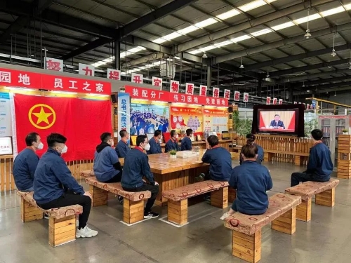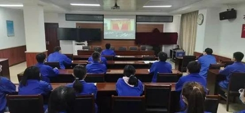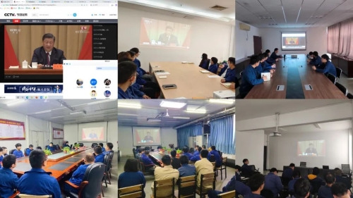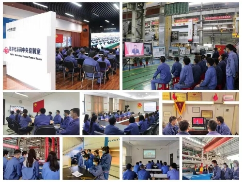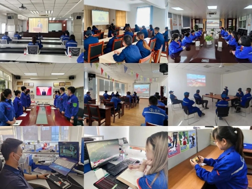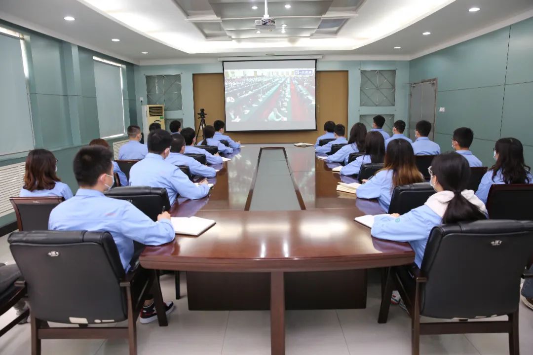 ▲和平重工集團團委組織團員青年收看現場直播