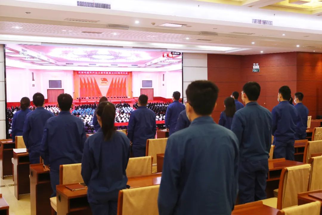 ▲江山重工研究院團委組織團員青年收看現場直播