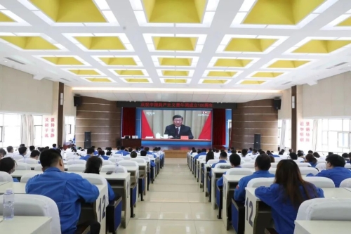 ▲豫西集團團委組織團員青年收看現場直播