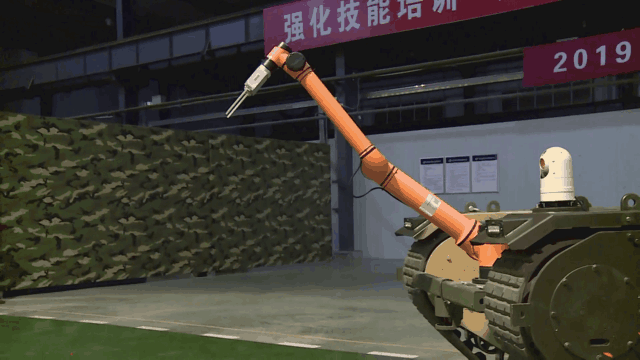 搭載機(jī)械手的多功能模塊化履帶無人平臺,就像一個靈活的機(jī)器人,面對地上的障礙物,利用機(jī)械手將抓取到的危險物品,穩(wěn)穩(wěn)地投擲到防爆倉里,在現(xiàn)場無人操控的情況下,圓滿完成應(yīng)急救援任務(wù)。