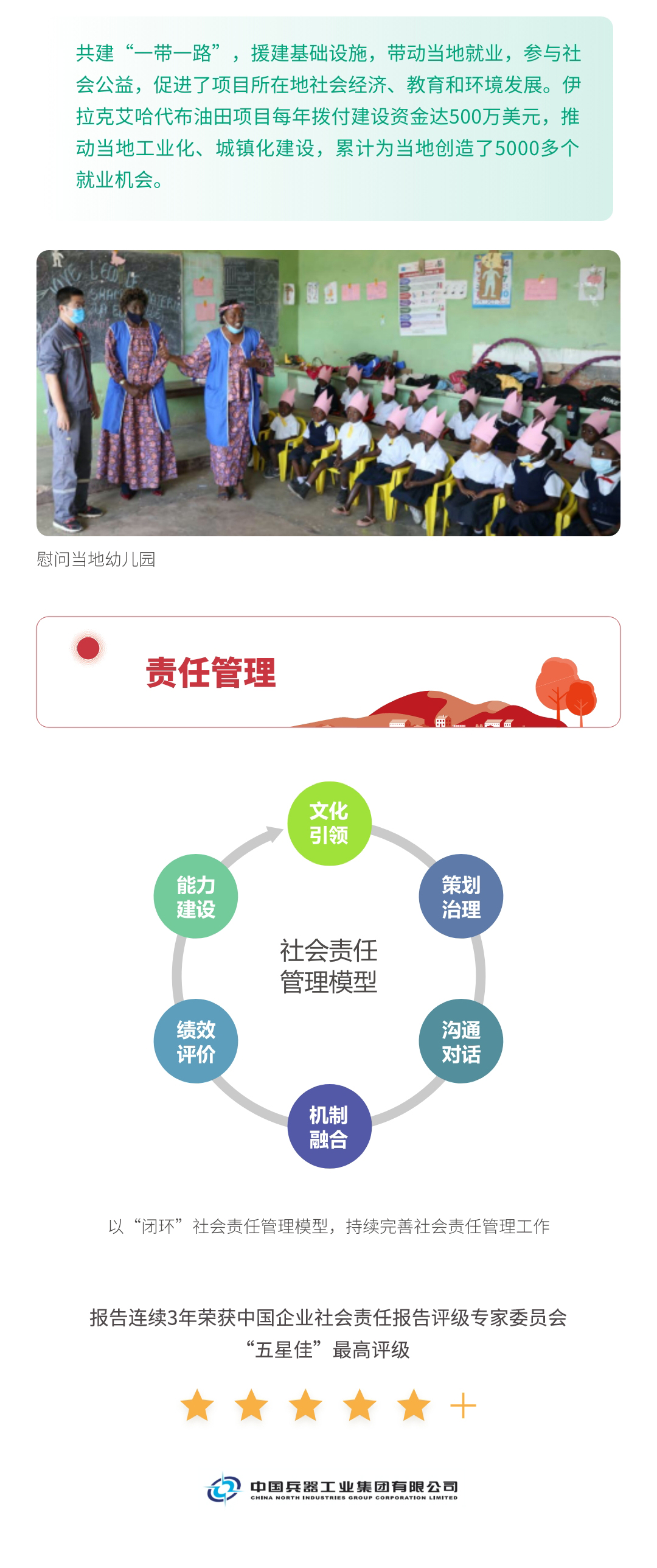 近日,兵器工業(yè)集團(tuán)正式發(fā)布第十三份年度社會(huì)責(zé)任報(bào)告——《中國(guó)兵器工業(yè)集團(tuán)有限公司2021年社會(huì)責(zé)任報(bào)告》,以“用心守護(hù)和平、用力爭(zhēng)創(chuàng)一流、用情溫暖社會(huì)”為主題,從恪守強(qiáng)軍首責(zé)、服務(wù)經(jīng)濟(jì)建設(shè)、共創(chuàng)美好生活三個(gè)維度,向社會(huì)全面披露2021年度履責(zé)實(shí)踐和履責(zé)業(yè)績(jī)?!秷?bào)告》連續(xù)第三年獲得中國(guó)企業(yè)社會(huì)責(zé)任報(bào)告評(píng)級(jí)專家委員會(huì)“五星佳”評(píng)級(jí),兵器工業(yè)集團(tuán)成為軍工行業(yè)唯一連續(xù)11年獲得五星及五星佳最高評(píng)級(jí)的企業(yè)。