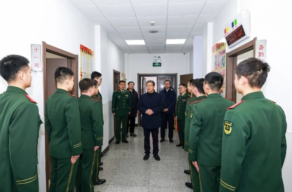 新春佳節(jié)將至,歲寒情深暖心。2月13日,中國兵器工業(yè)集團有限公司黨組書記、董事長周治平到總部三里河辦公區(qū)、車道溝十號院執(zhí)勤武警營區(qū),向一線官兵致以誠摯問候和新春祝福。  周治平在總部三里河辦公區(qū)慰問執(zhí)勤武警官兵